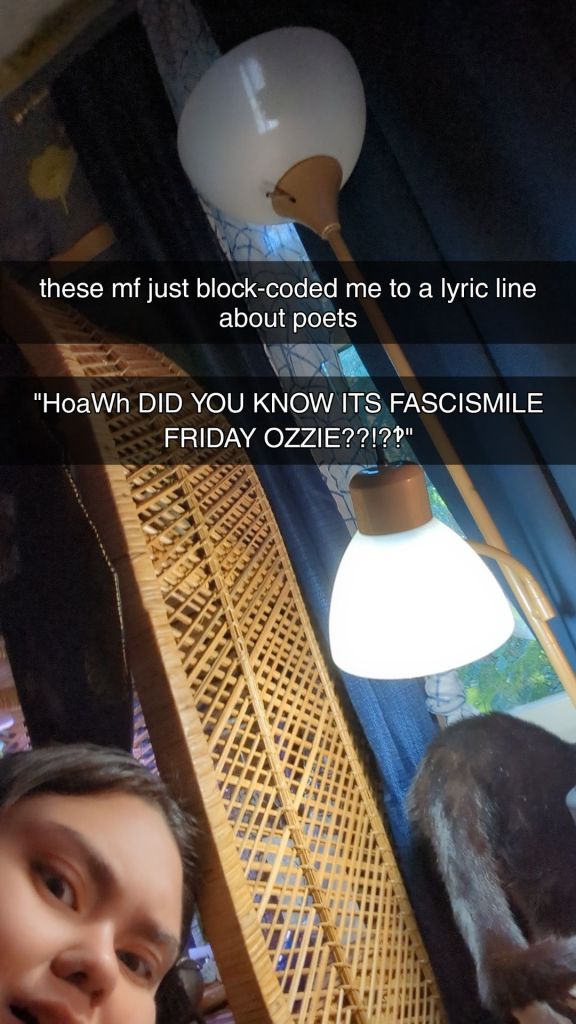 You called me ‘ you didnt remember that ‘ well fine, no one likes my shit. [“you can just read it to me when I get there; I love ants’.]