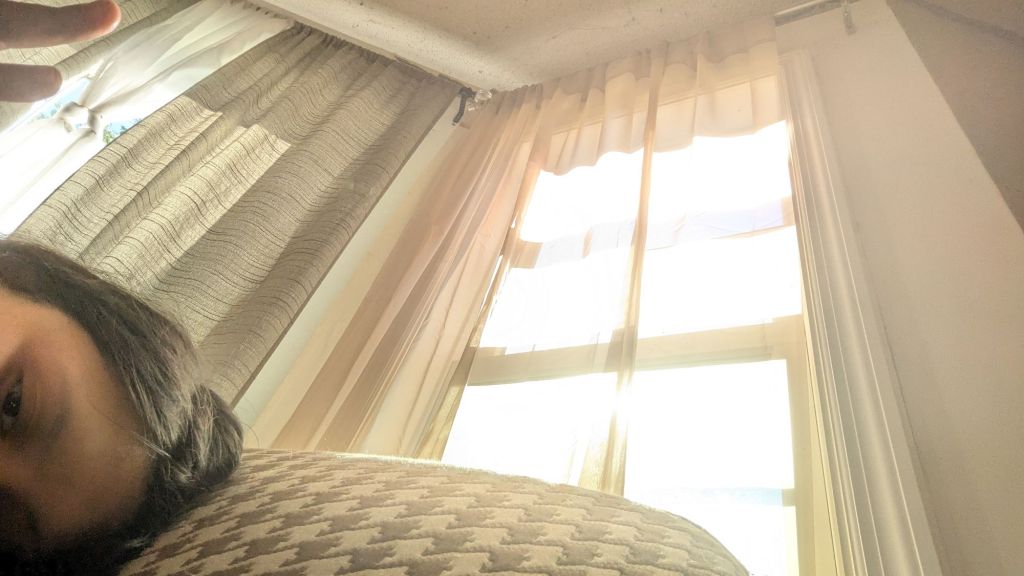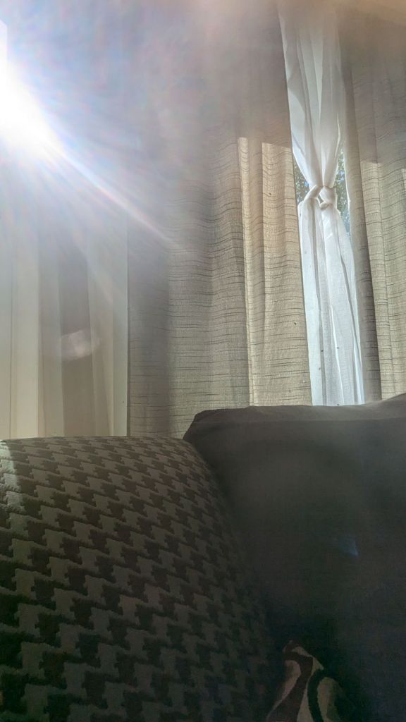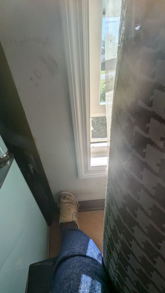 Just sitting here in my chair by my mini-fridge in the left thin 3/4 panel by the –